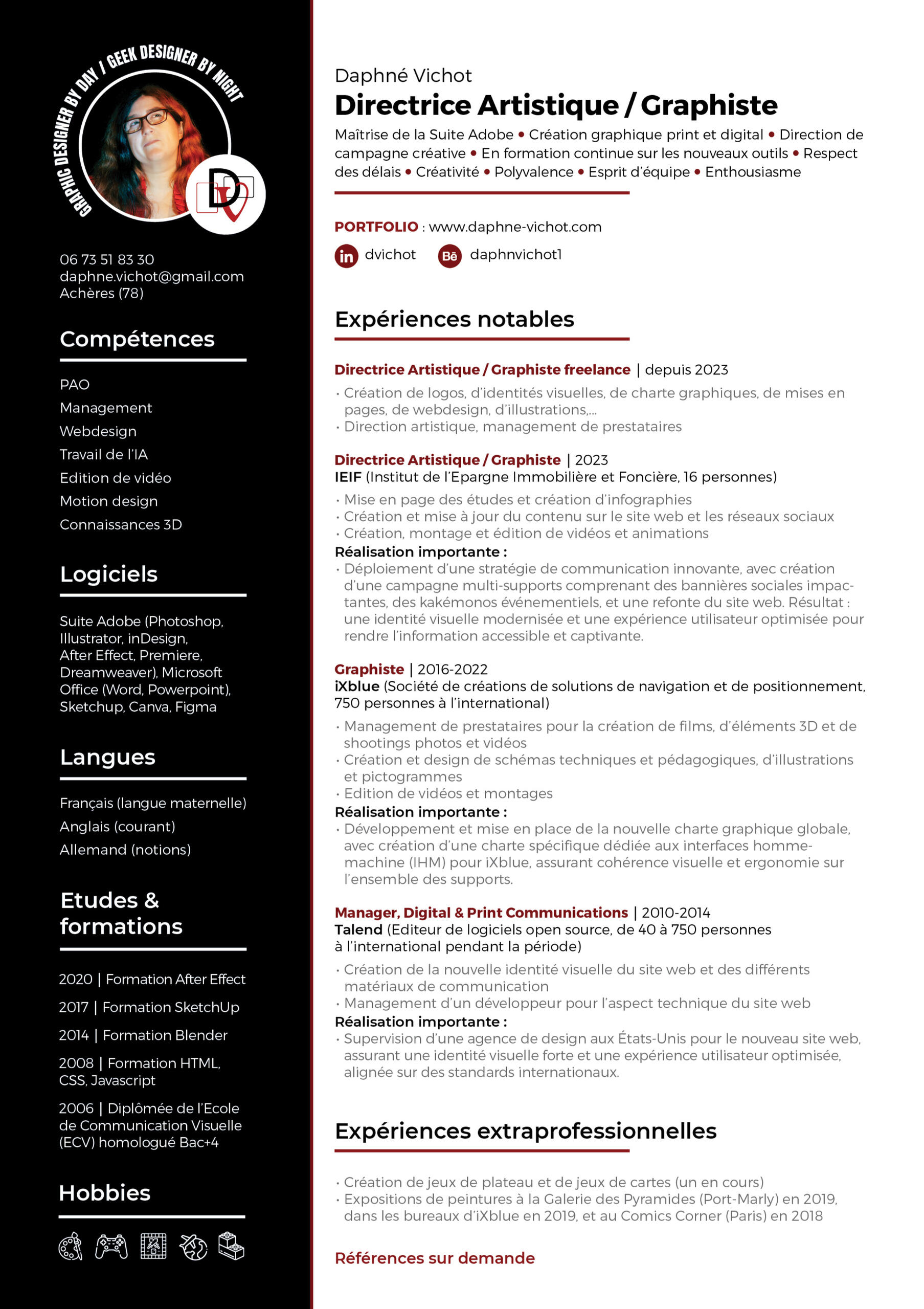 Je suis Graphiste / Directrice Artistique depuis 20 ans.Graphic Designer by Day, Geek Designer by NightEn tant que Directrice Artistique, je donne vie à des concepts abstraits et transforme des idées en véritables œuvres d'art, tout en portant fièrement le titre de geek nocturne.Jeu de Créativité 24/7Ma vie est un jeu infini de créativité. De la conception visuelle épurée aux aventures immersives dans l'univers du design, je trouve l'inspiration dans chaque aspect de ma vie. En tant que geek fervente, je me nourris de la technologie, des jeux de société tactiques et des mondes virtuels qui défient l'imagination.Adaptabilité, ma SuperpuissanceDans un monde en perpétuelle évolution, je m'adapte facilement. Les défis stimulent ma créativité, et chaque obstacle est une nouvelle opportunité de repousser les limites du design.Concevoir le Futur avec Style et SubstanceMa mission est de concevoir le futur, en mariant le style et la substance. La technologie est mon outil, les jeux sont ma source d'inspiration, et chaque projet est une aventure artistique.